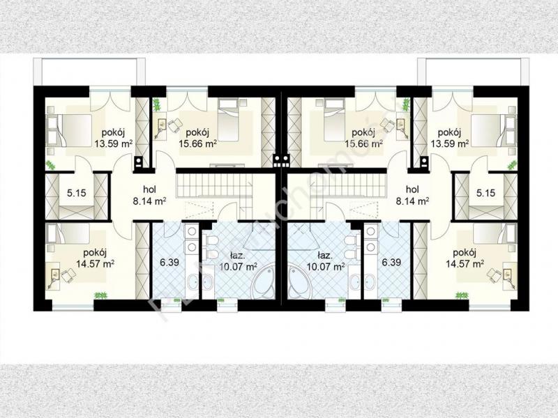 Ustawny i funkcjonalny rozkład pomieszczeń brak skosów sprawia, że pokoje są przestronne i łatwe w aranżacji.